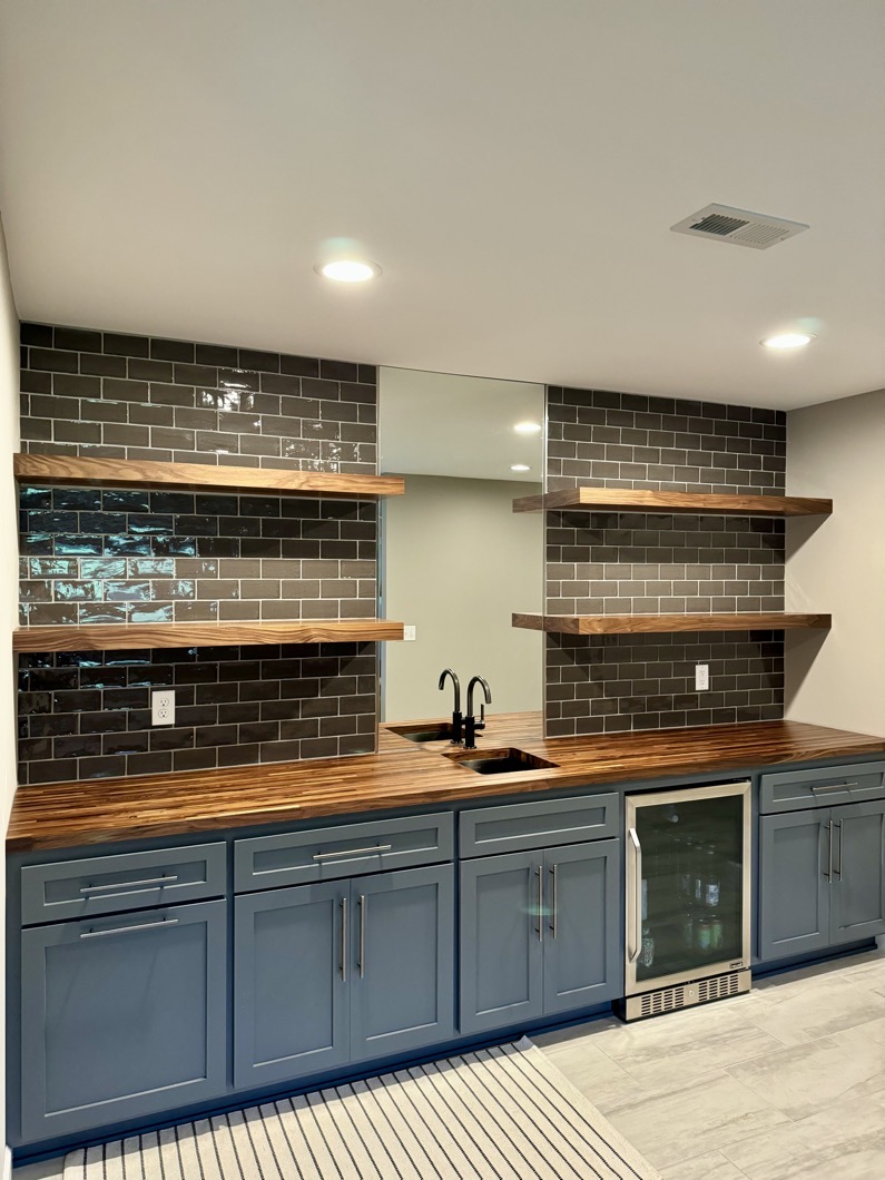 Custom Cabinets | Wet Bar with Black Walnut Butcher Block Top